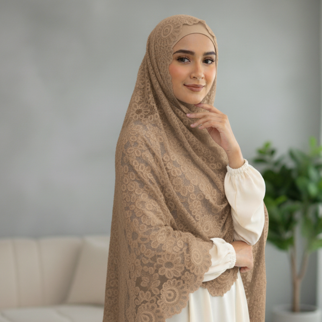 حجاب دانتيل بإضاءة القمر - أناقة رقيقة وسحر متألق